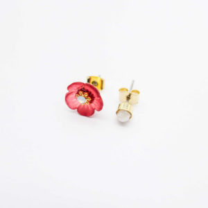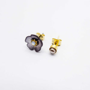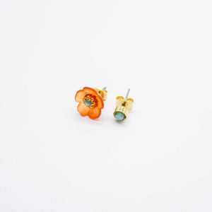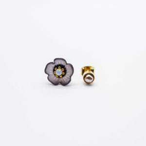 Asymmetric acrylic flower studs with a full blossom on one side and a round stud on the other.